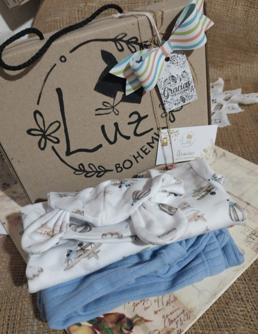 Ajuar de Nacimiento Recibidor | Amore Mío | Celeste Océano | Algodón Peinado 4 piezas