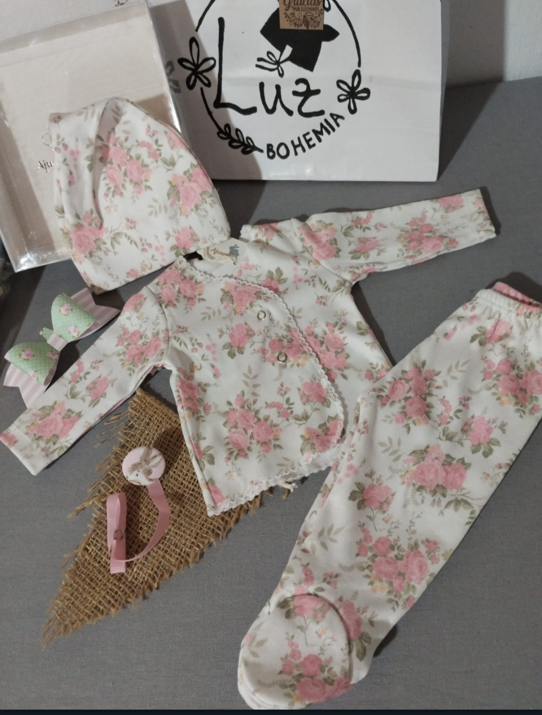Ajuar de Nacimiento Recibidor | Alizée| para Beba Recién Nacida | Set 3 Piezas