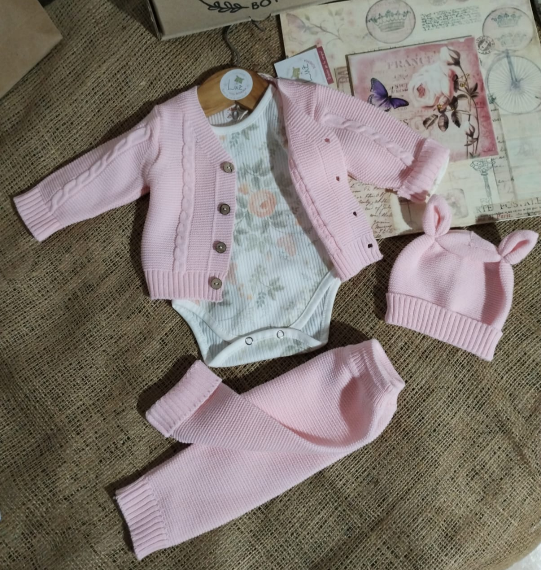 Este ajuar de hilo rosa para bebé recién nacida es delicado, suave y perfecto para los primeros días 🤍
