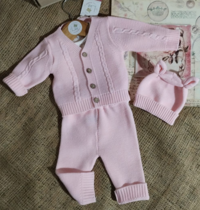 Ajuar de Hilo Rosa | Hipoalergénico |. Set 3 Piezas