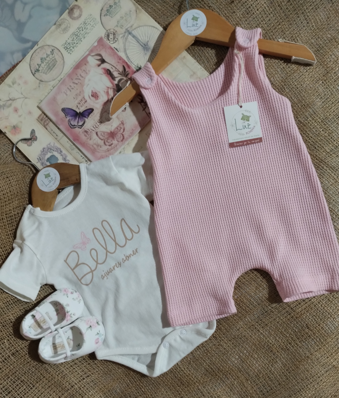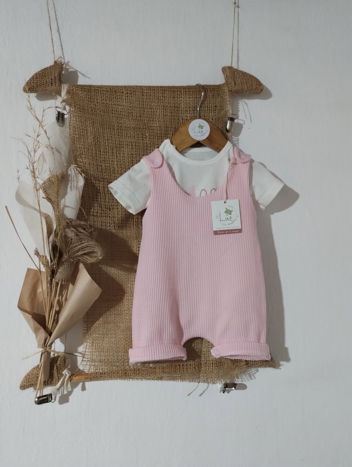 Conjunto Jardinero Corto + Body | Incanto | Wafle y Algodón 100%