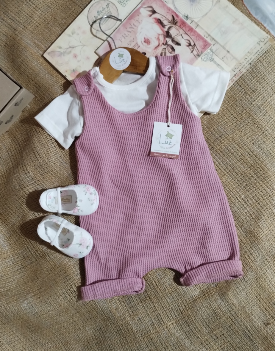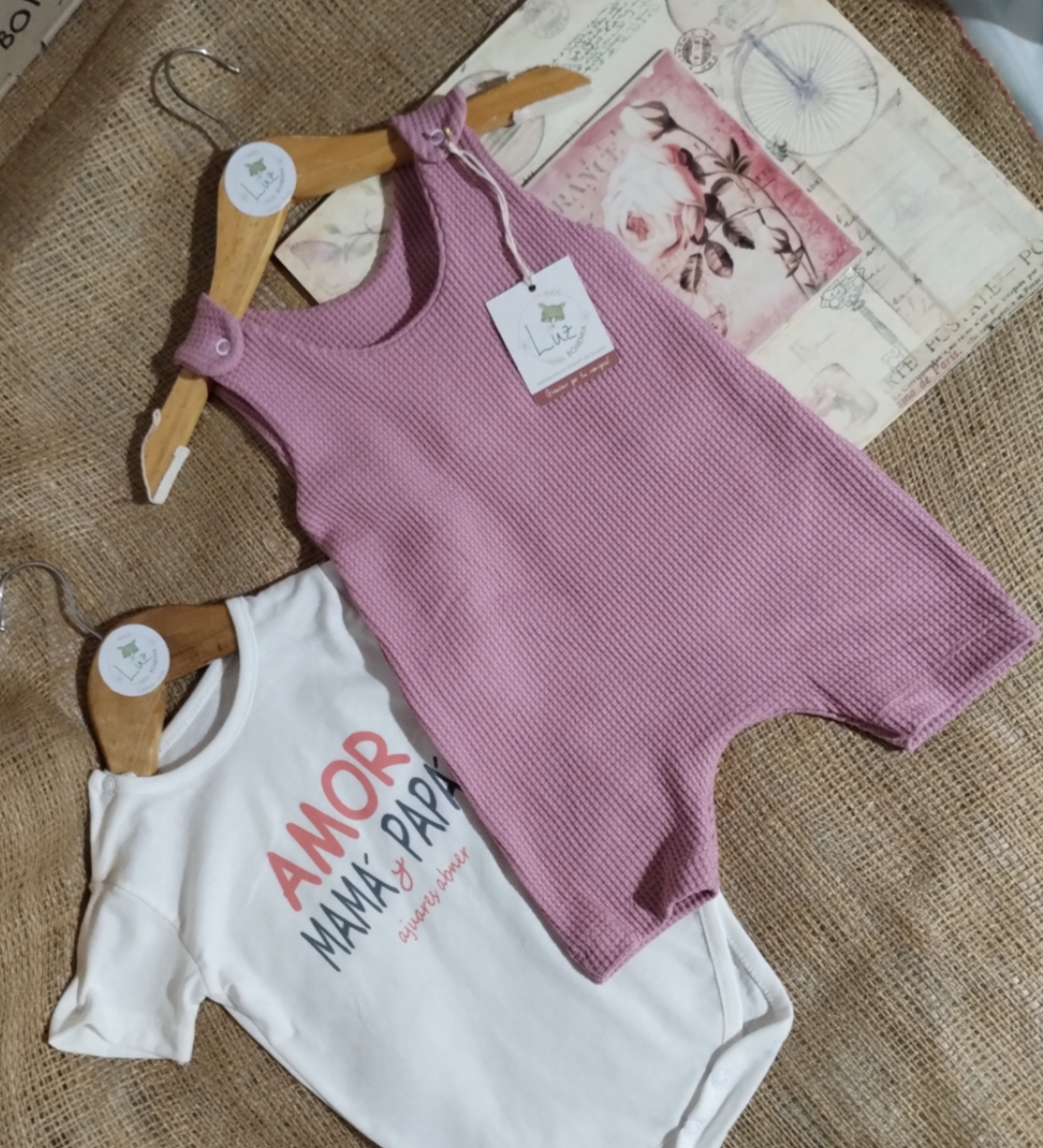 Conjunto Jardinero Corto + Body | Incanto | Wafle y Algodón 100%