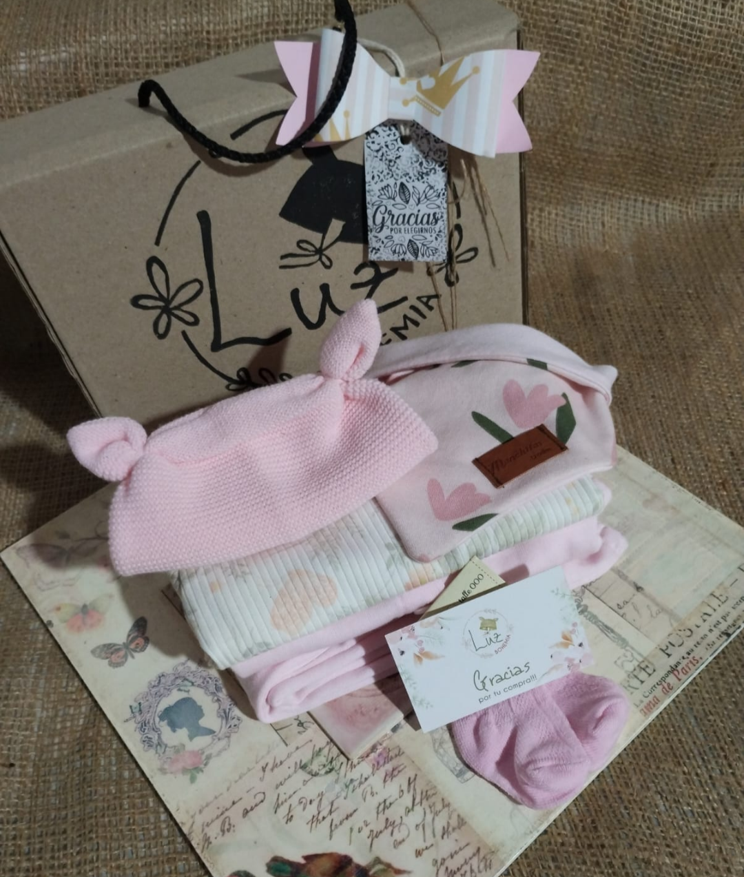 Ajuar Box Nacimiento Beba | Dulce Mía Recién Nacida | Set 6 Piezas