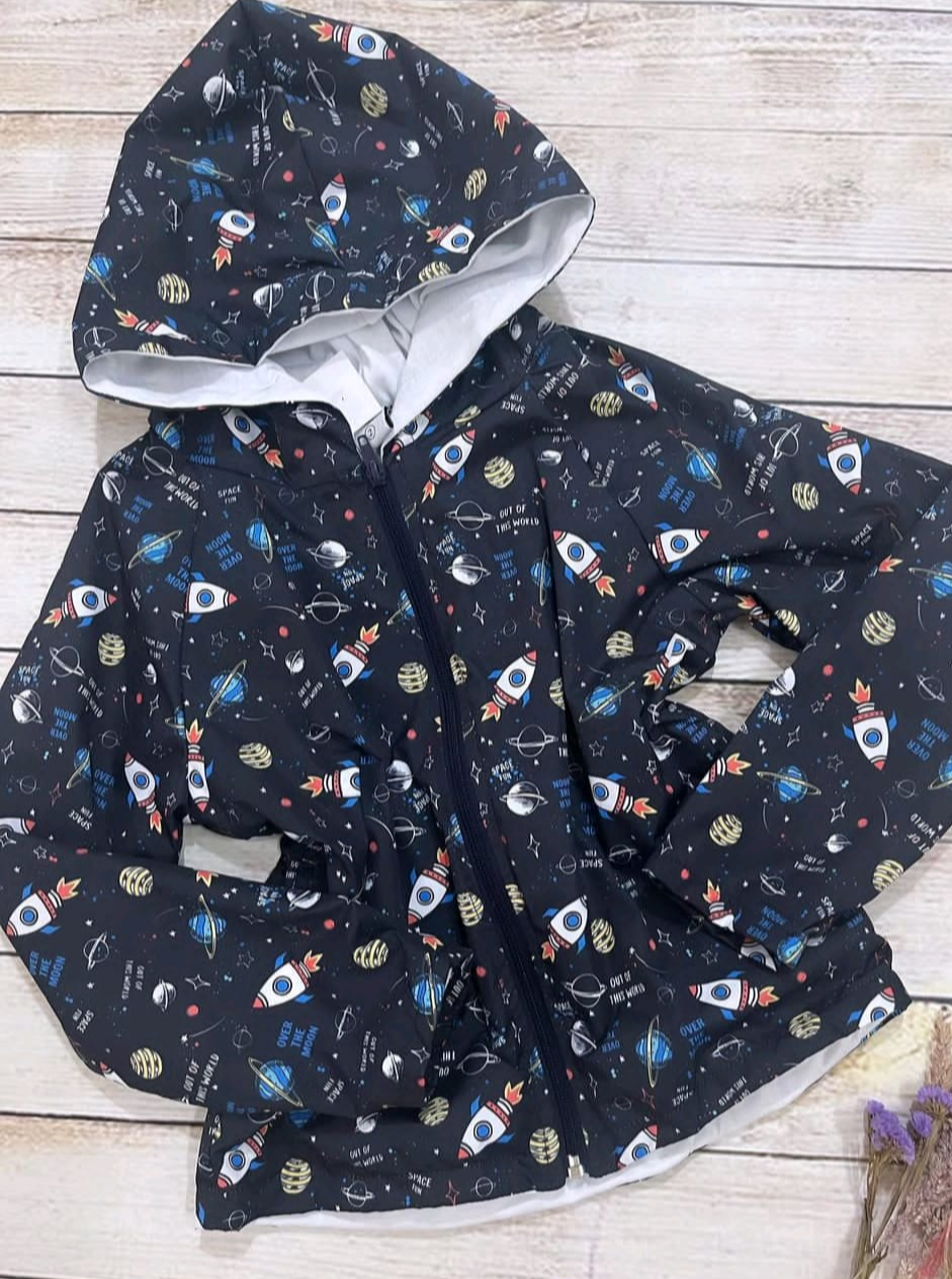 • Estampado espacial con cohetes y planetas, divertido y moderno.