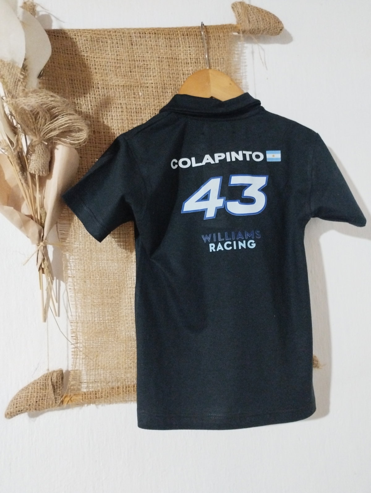 Con estampas de Williams Racing al frente y Colapinto en la espalda, esta chomba hará que los pequeños fanáticos de la Fórmula 1 luzcan únicos y se sientan parte del equipo.