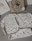 El ajuar de nacimiento Lucio presenta una delicada estampa en fondo blanco con pequeños perritos grises en dos tonos 🤍