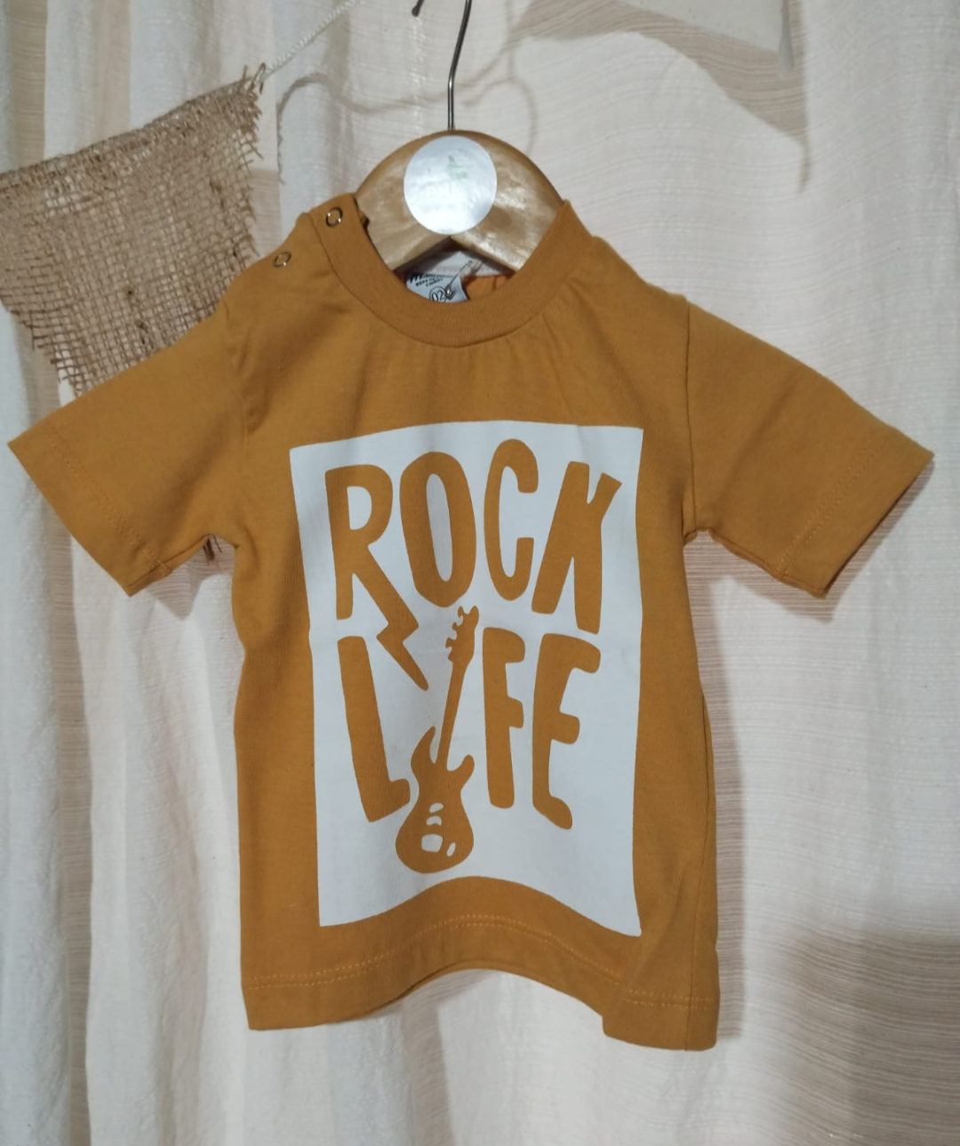 Remera Manga Corta Bebé | Estampa Rock Life | Algodón Peinado