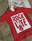 Estampa "Rock Life" moderna y divertida en blanco sobre fondo rojo.