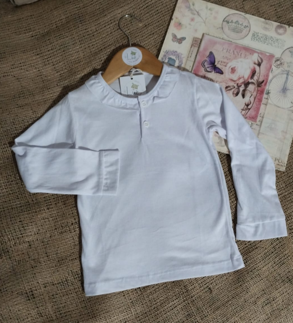 Remera Manga Larga Beba | Volados & Botones | Algodón Peinado Premium