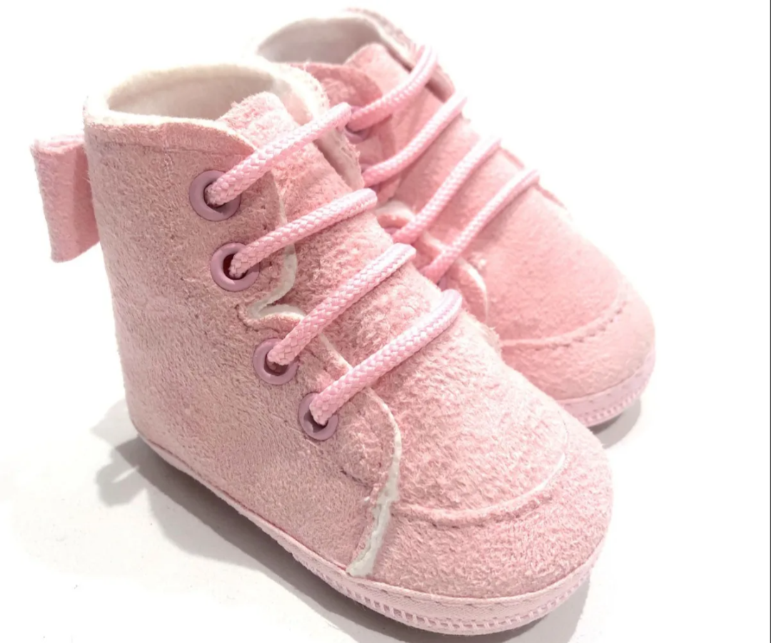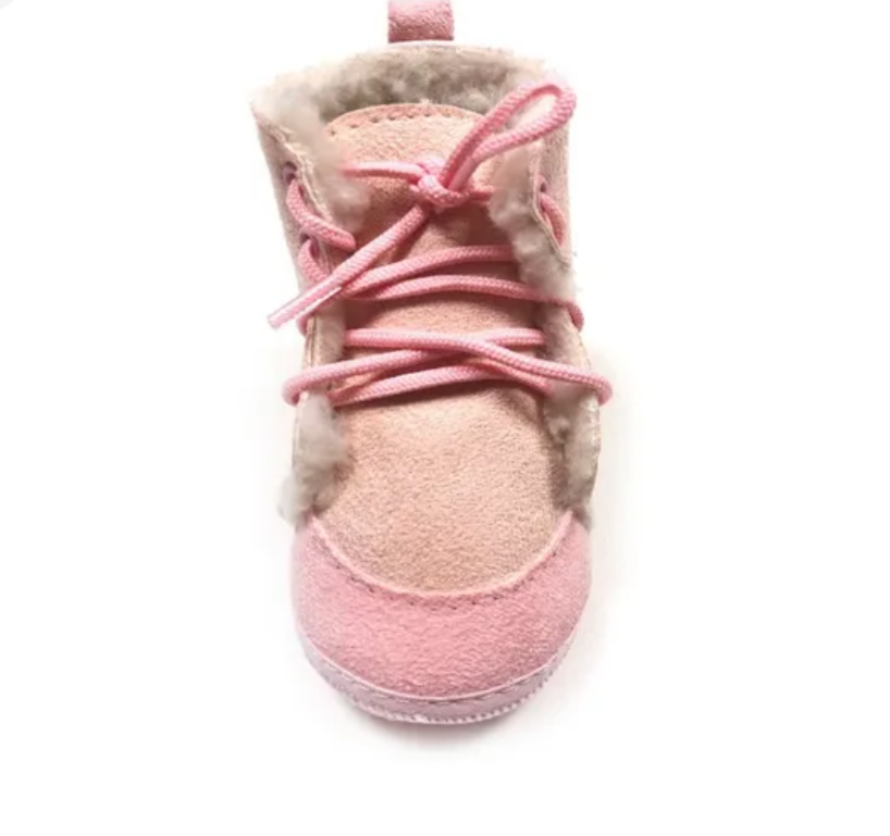 Botita para bebé confeccionada en gamuza con interior de piel de corderito, súper suave y abrigada para mantener los piecitos protegidos 🤍
