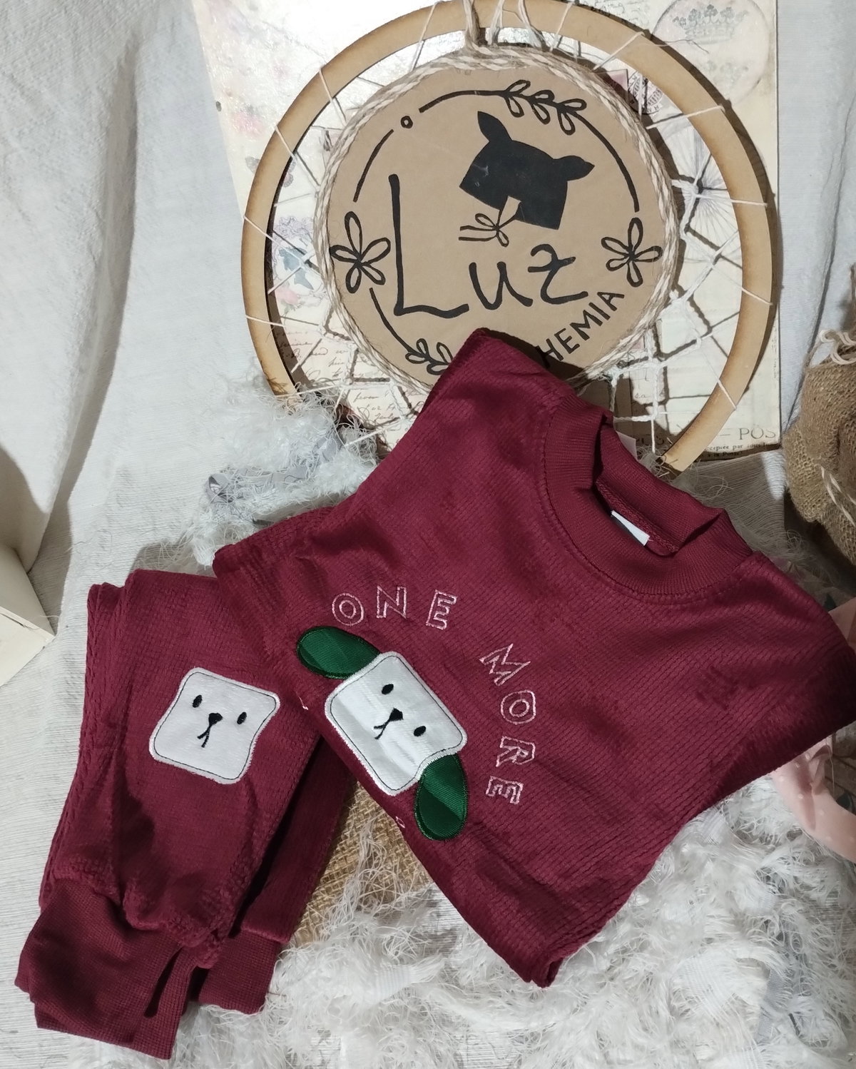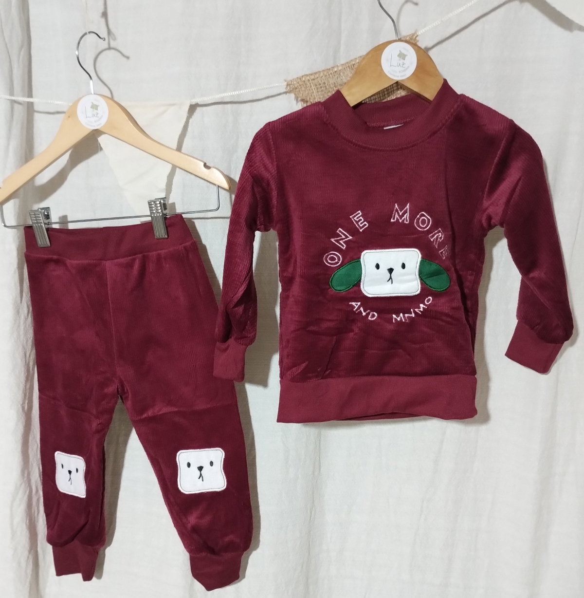 Confeccionado en plush de calidad premium, este conjunto incluye buzo con detalles en brazos y aplique de osito, y pantalón a juego con terminaciones en puño. Perfecto para mantener a tu bebé cómodo, cálido y tierno durante todo el día.