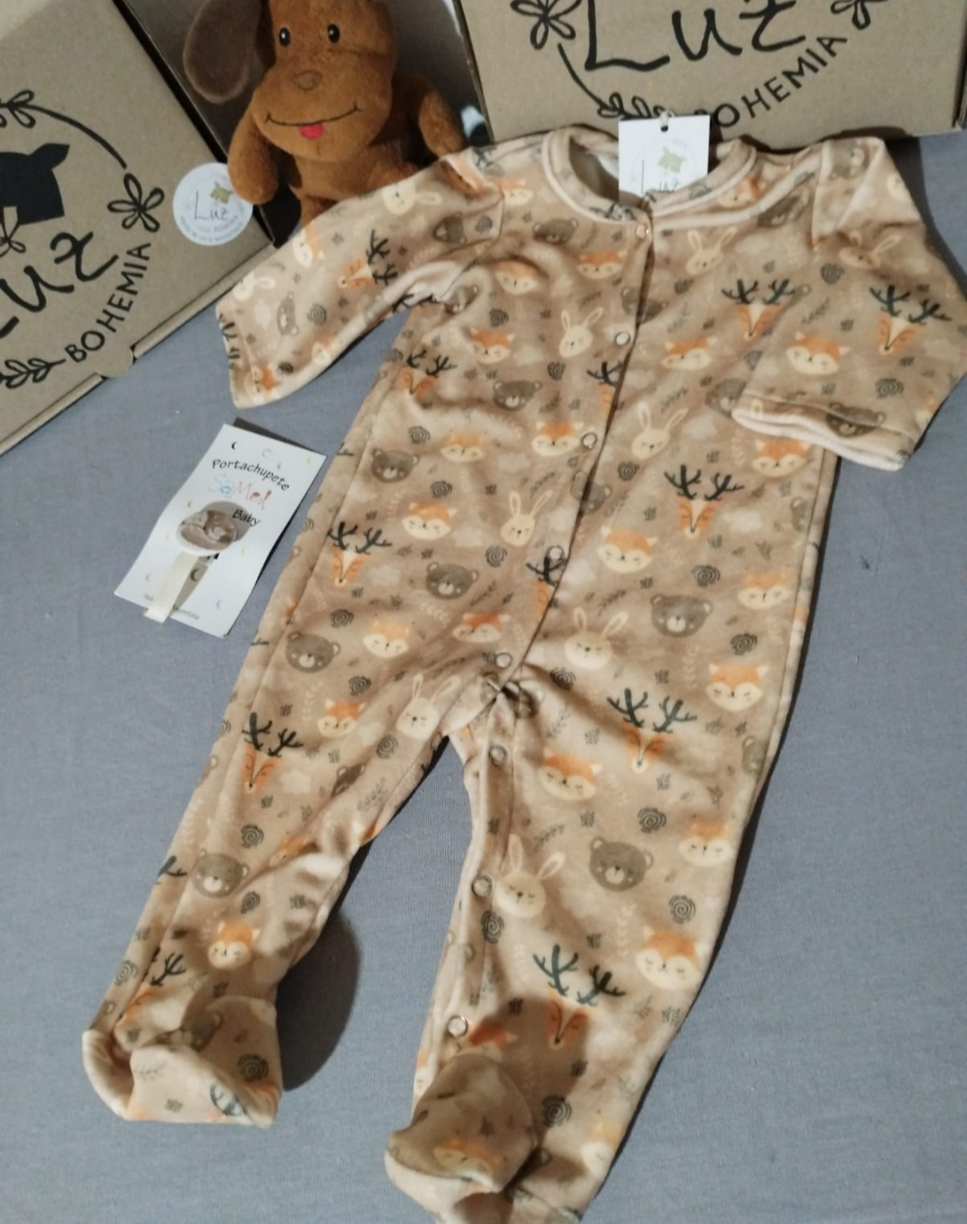 Enterito dormilón confeccionado en polar soft extra suave. Broches metálicos en frente y zona del pañal para mayor practicidad. Estampa de ensueño con pequeños animalitos nórdicos que enamoran.