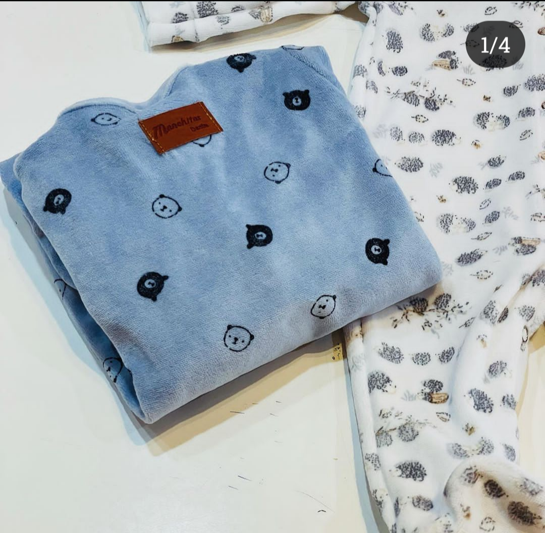 Enterito confeccionado en plush liso, súper cómodo y cálido. Detalle de broches metálicos en frente y broches en zona del pañal. Etiqueta de cuero en la espalda que le da un toque de distinción.