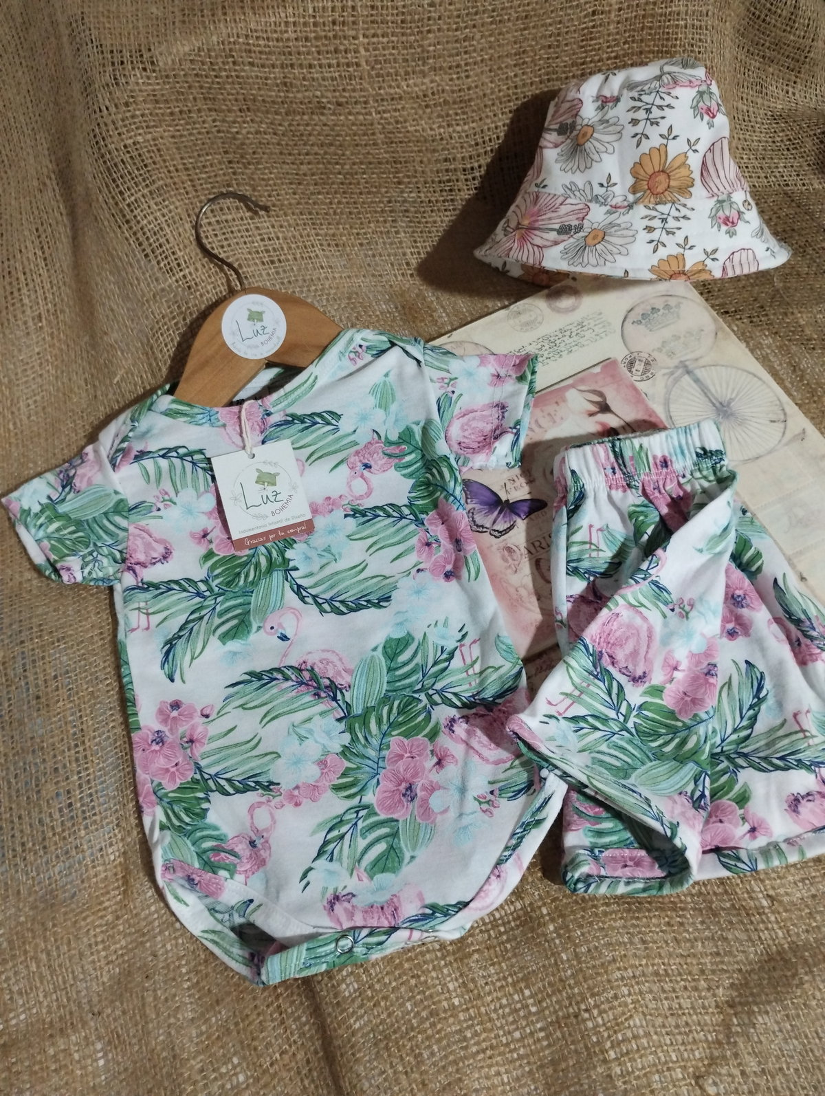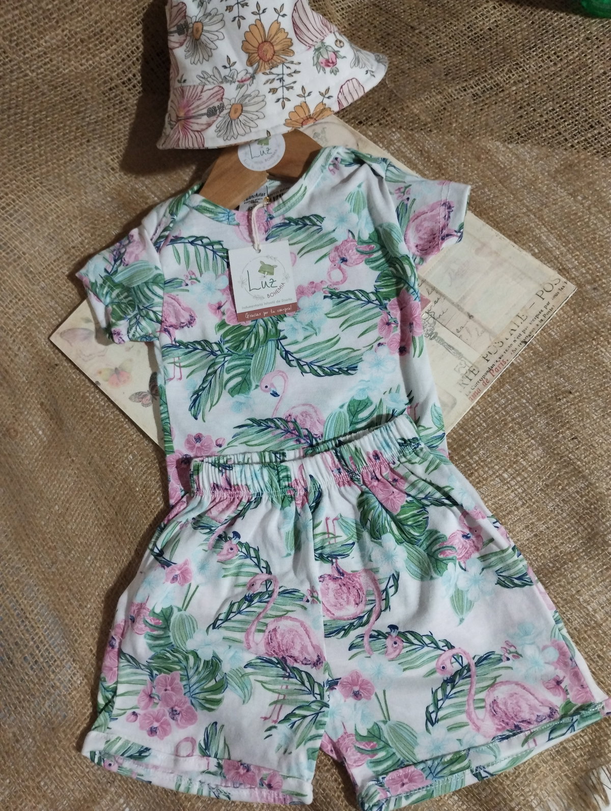 Conjunto Bebé Baby Flamencos | Body + Short | Algodón Peinado