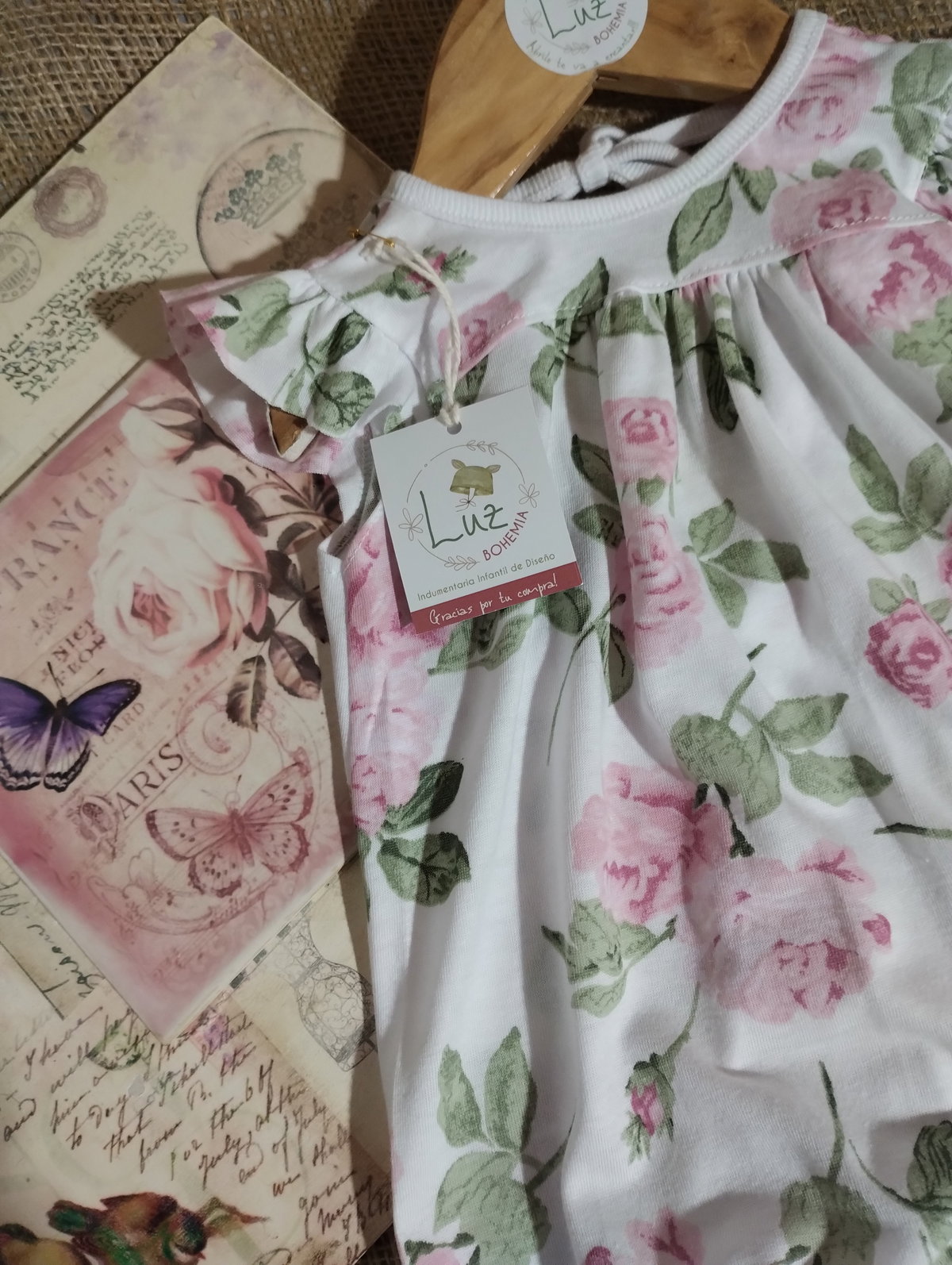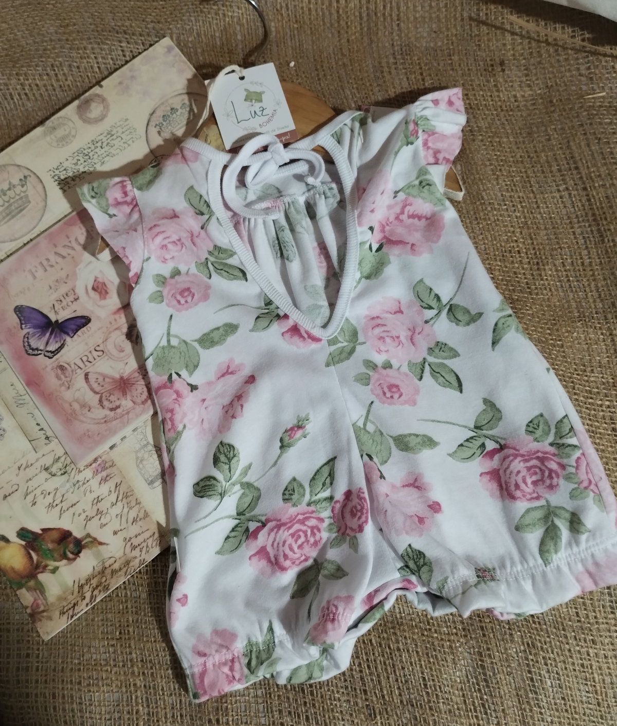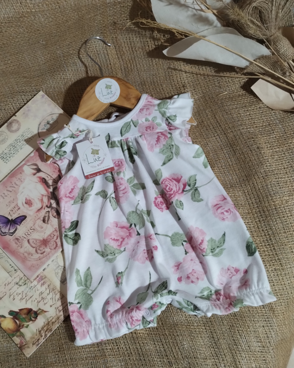 Enterito corto confeccionado en algodón y modal, súper suave y confortable. Detalle especial en la espalda que le da un toque encantador. Ideal para los primeros días de calor, manteniendo al bebé cómodo y fresco.