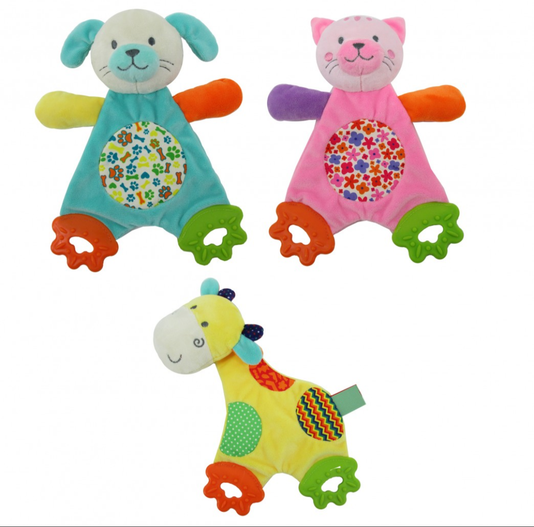 Su textura suave y liviana lo convierte en el compañero ideal para acompañar al bebé en sus primeros meses. Incluye chifle y sonajero que estimulan los sentidos, además de mordillos diseñados para aliviar las molestias cuando comienzan a salir los dientitos.