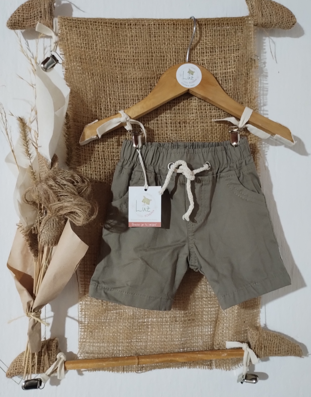 Bermuda Corta de Gabardina para Bebé | Con Cordón | Color Cemento