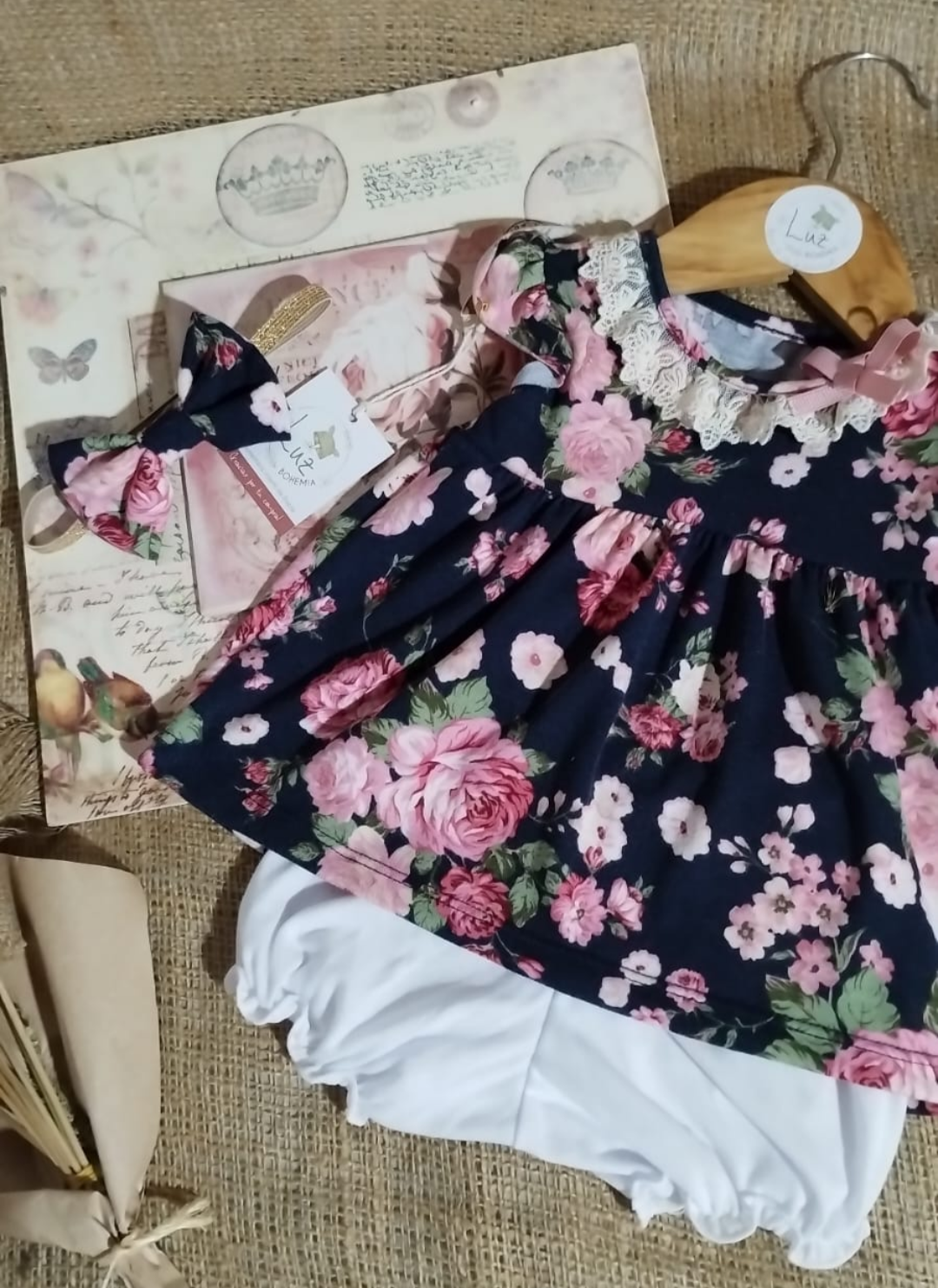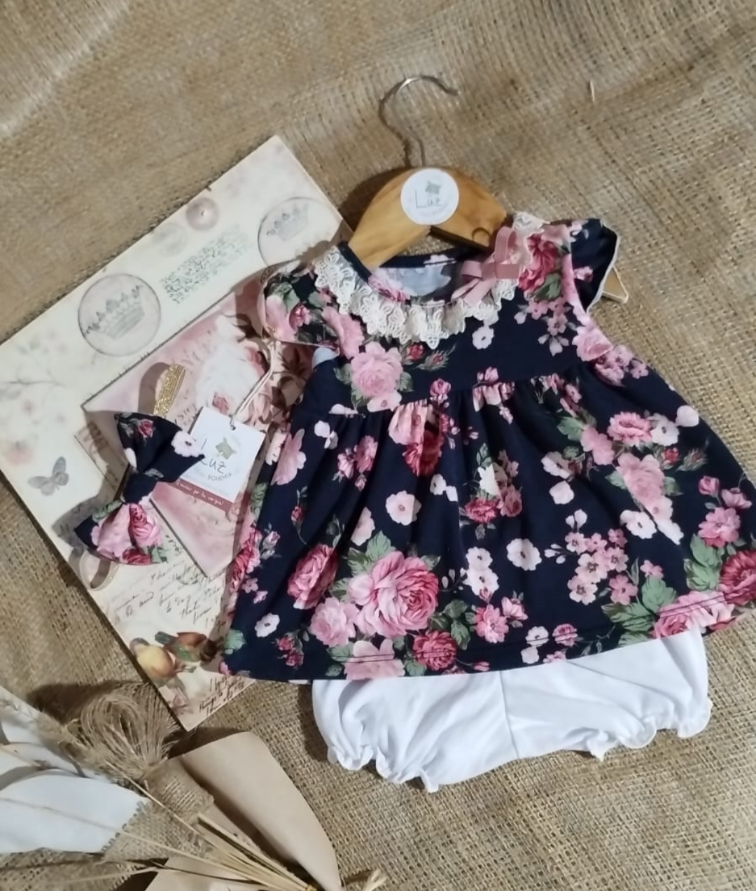 Vestido de Beba + Bombachudo + Vincha | Estampa Vintage Floral | Algodón