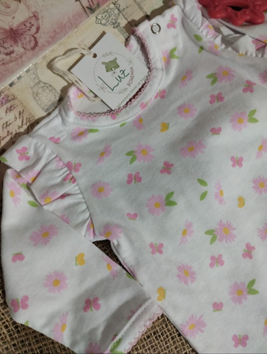 ✔ 1 Body manga larga de beba en algodón con detalle picot.
