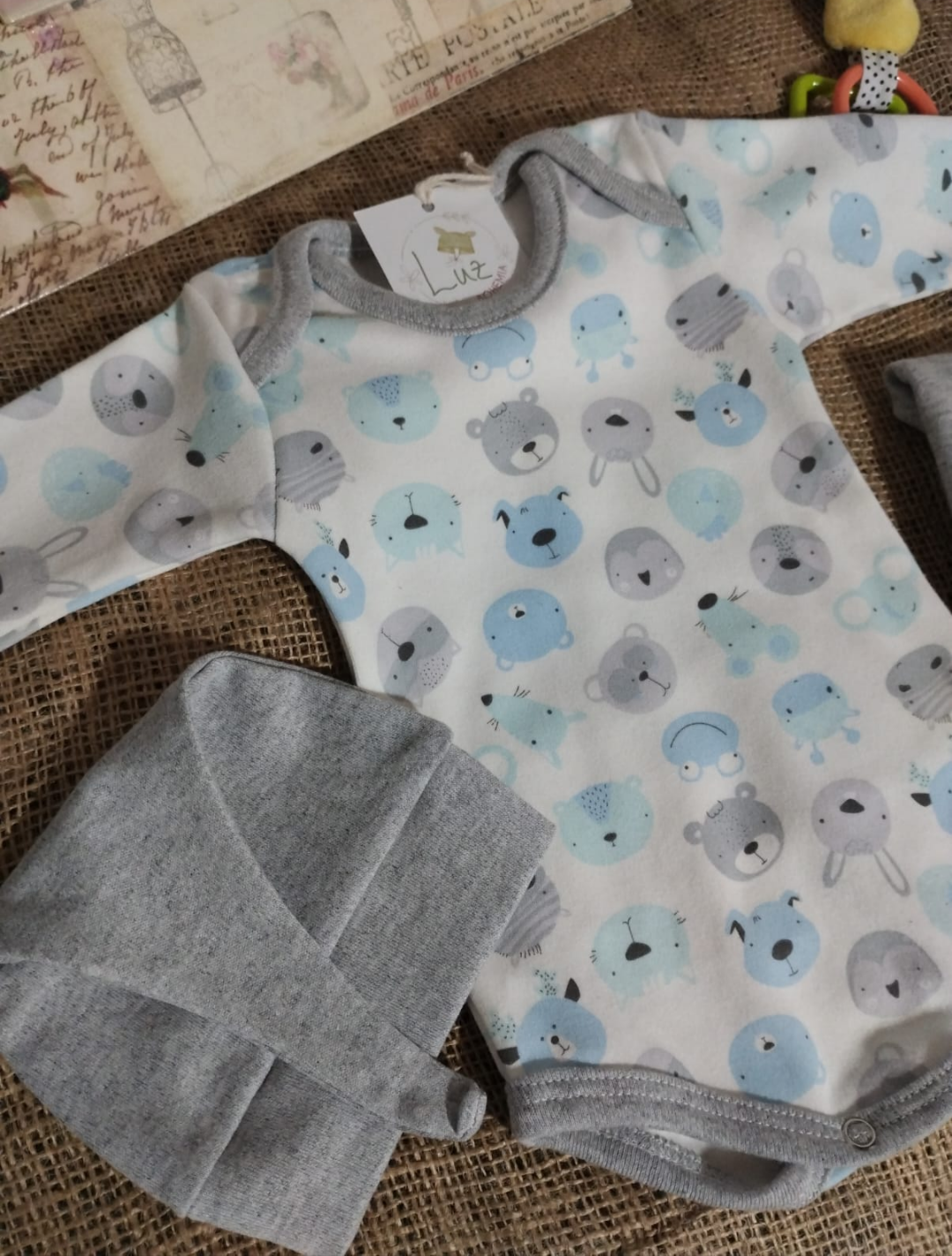 Su diseño clásico con animalitos y la suavidad del algodón 100% lo convierten en una opción cómoda y delicada para los primeros meses.