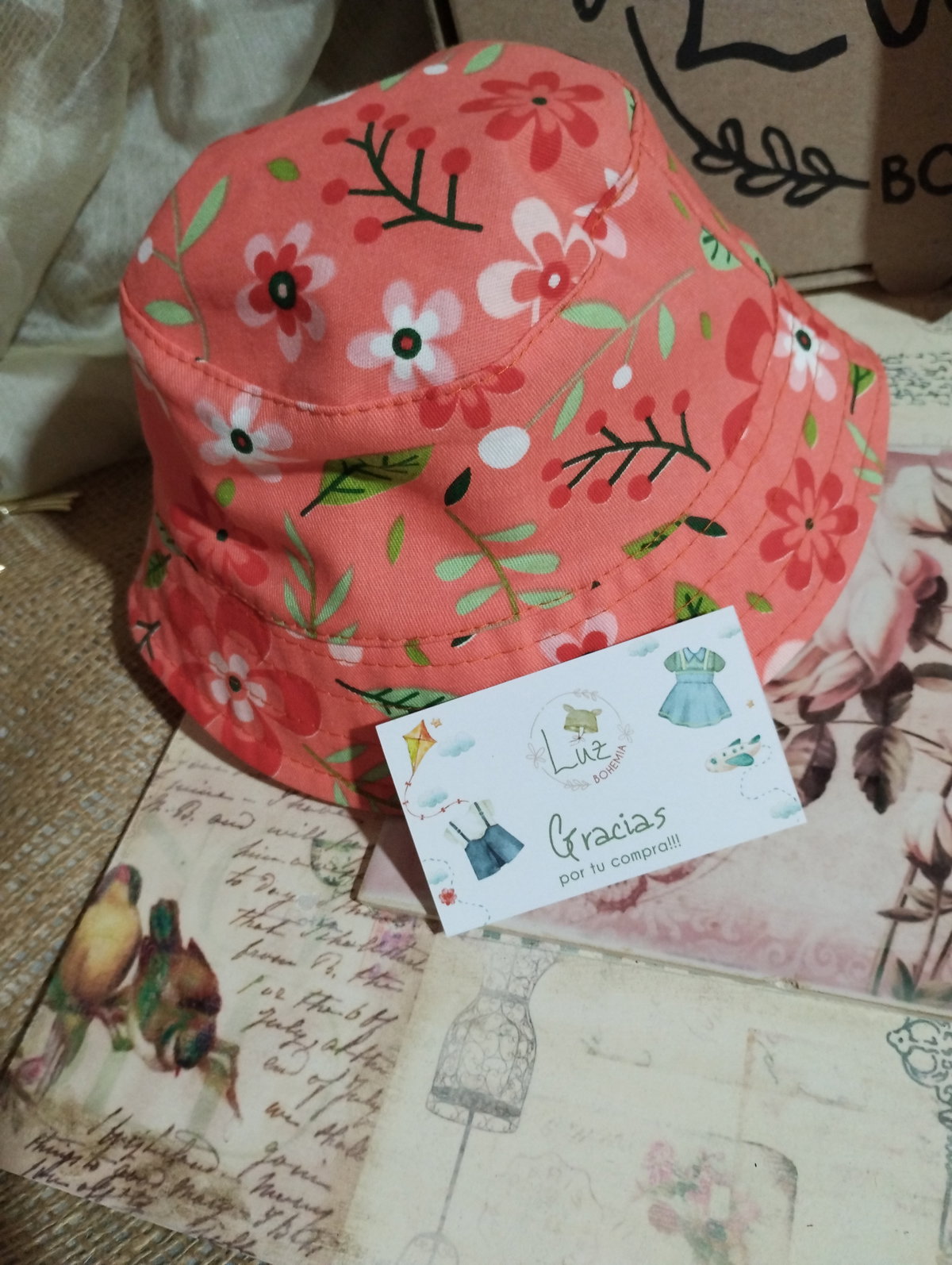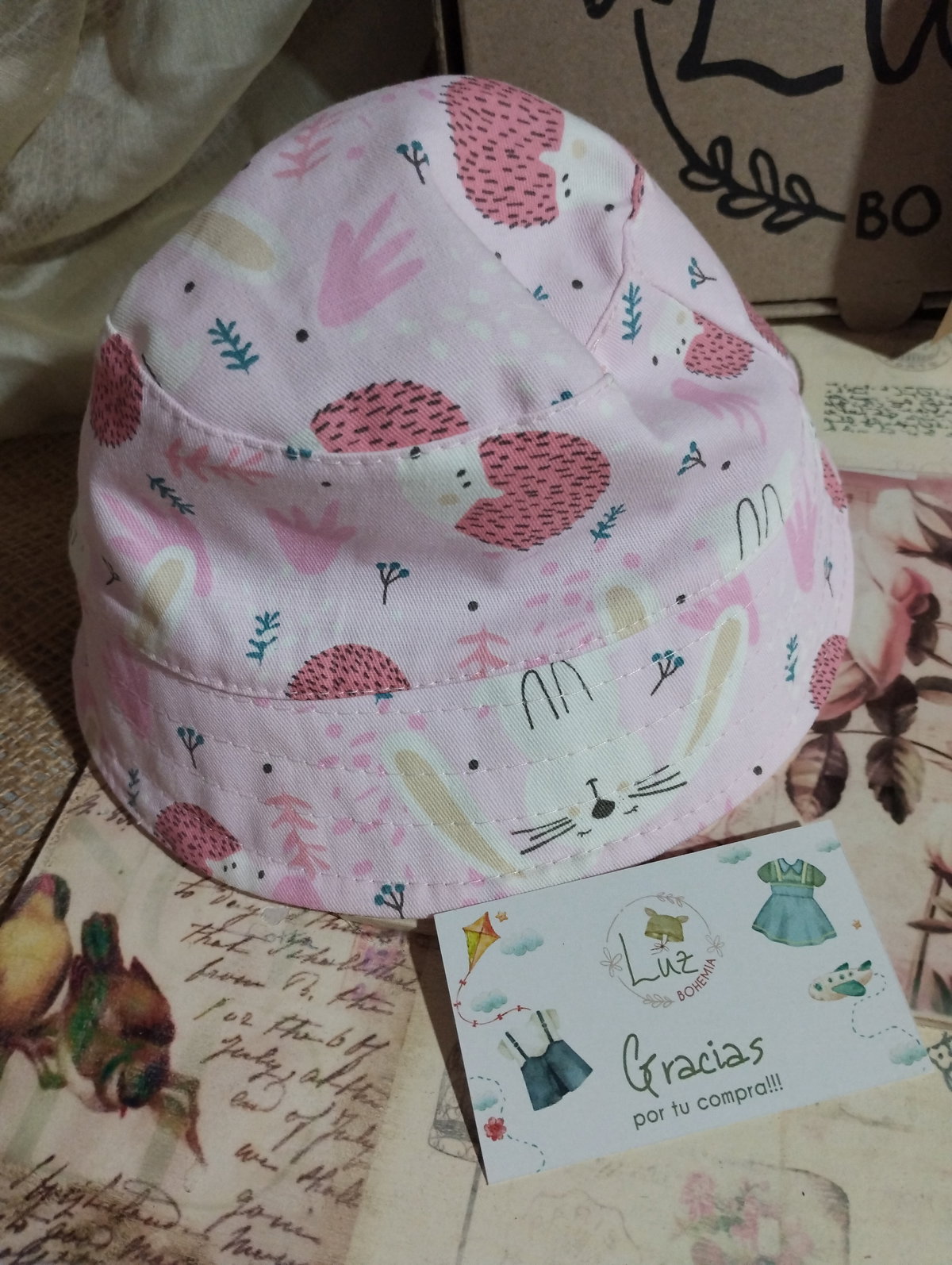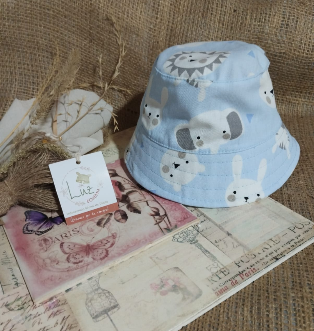 Gorrito piluso confeccionado en gabardina estampada de calidad, ideal para mantener la cabecita de tu bebé protegida con estilo y comodidad. Perfecto para paseos y días soleados.