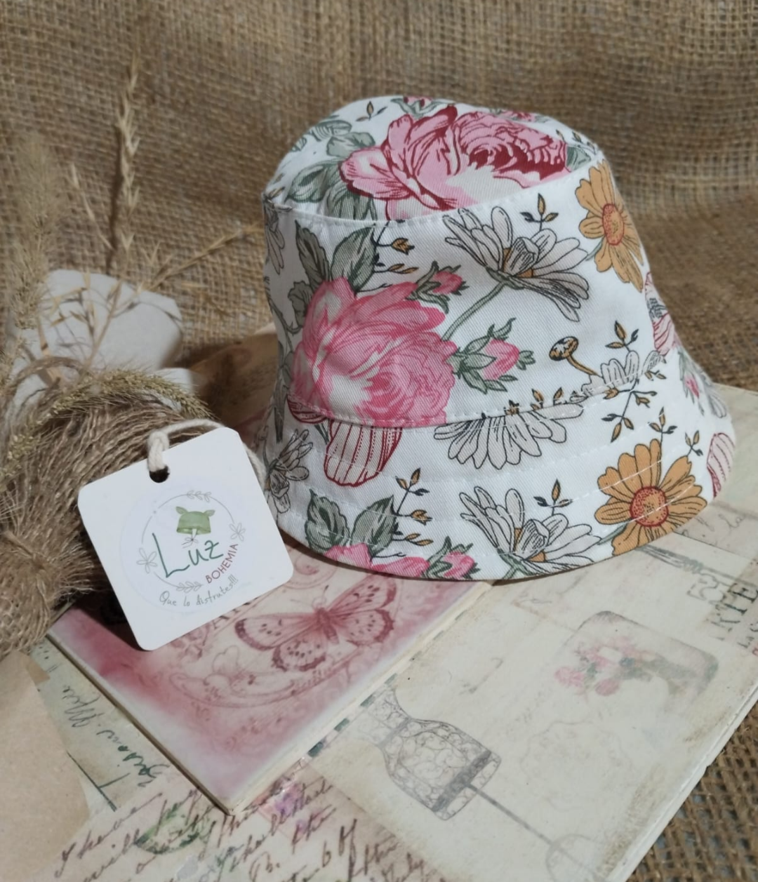 Gorrito piluso confeccionado en gabardina estampada de calidad, ideal para proteger la cabecita de tu bebé con estilo y comodidad. Perfecto para paseos y días soleados.
