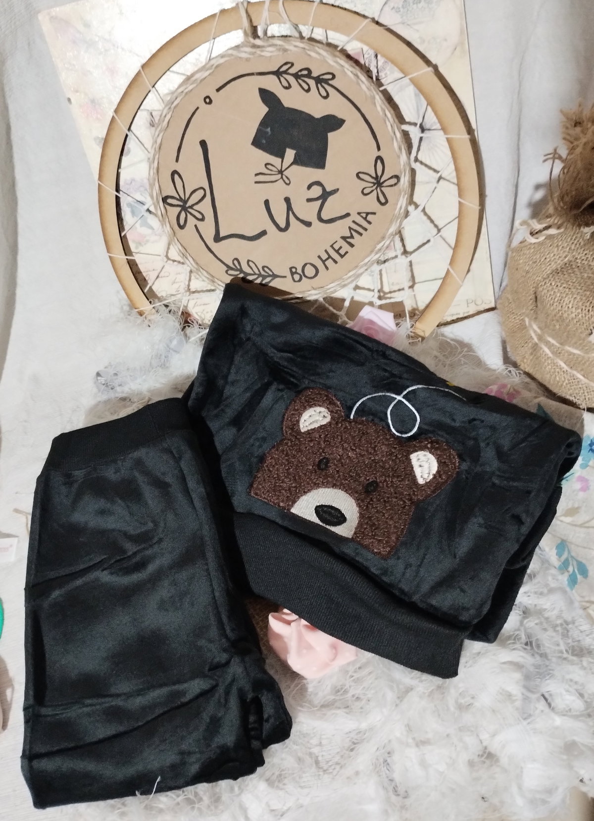 Color: Negro con estampa bordada de osito