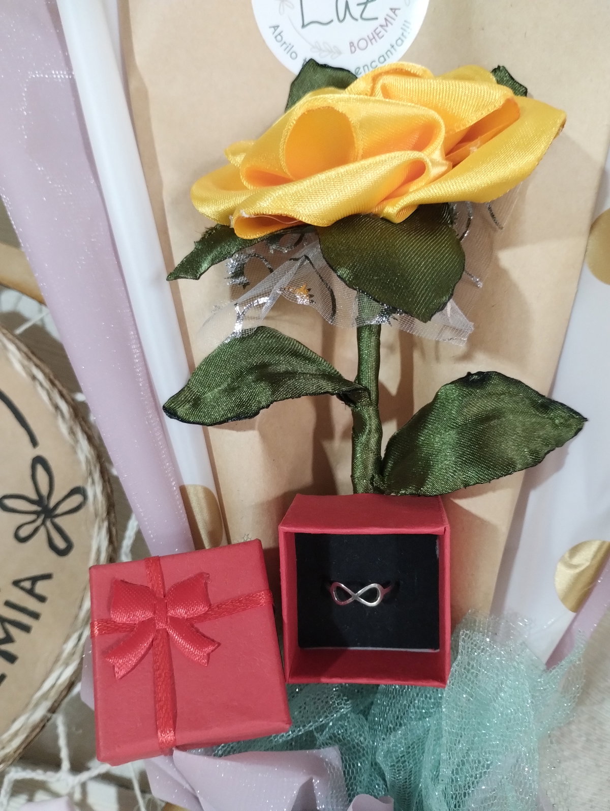 Incluye un precioso anillo en su cofre, disponible en acero quirúrgico blanco o dorado (coordinación por mensaje privado).