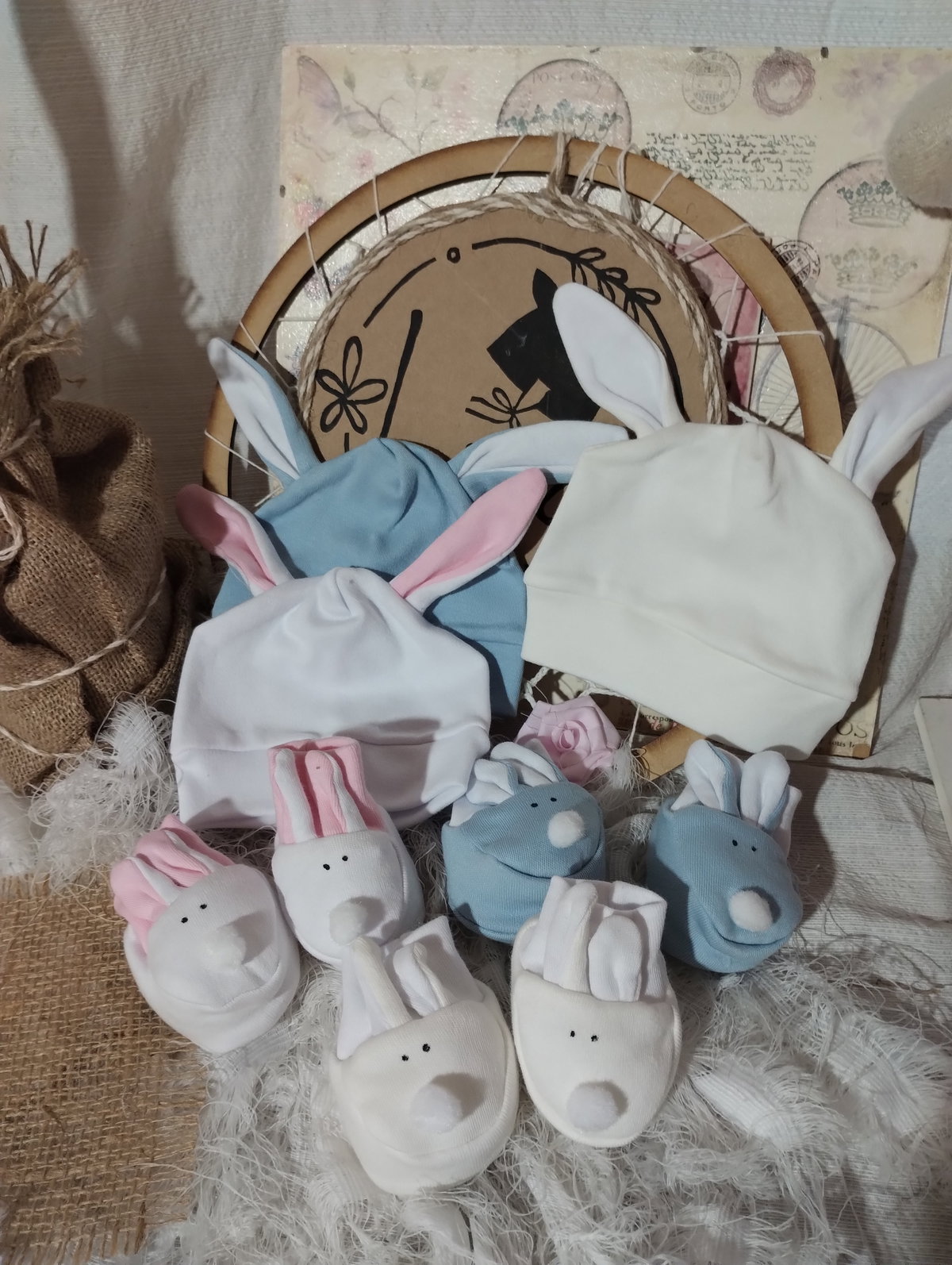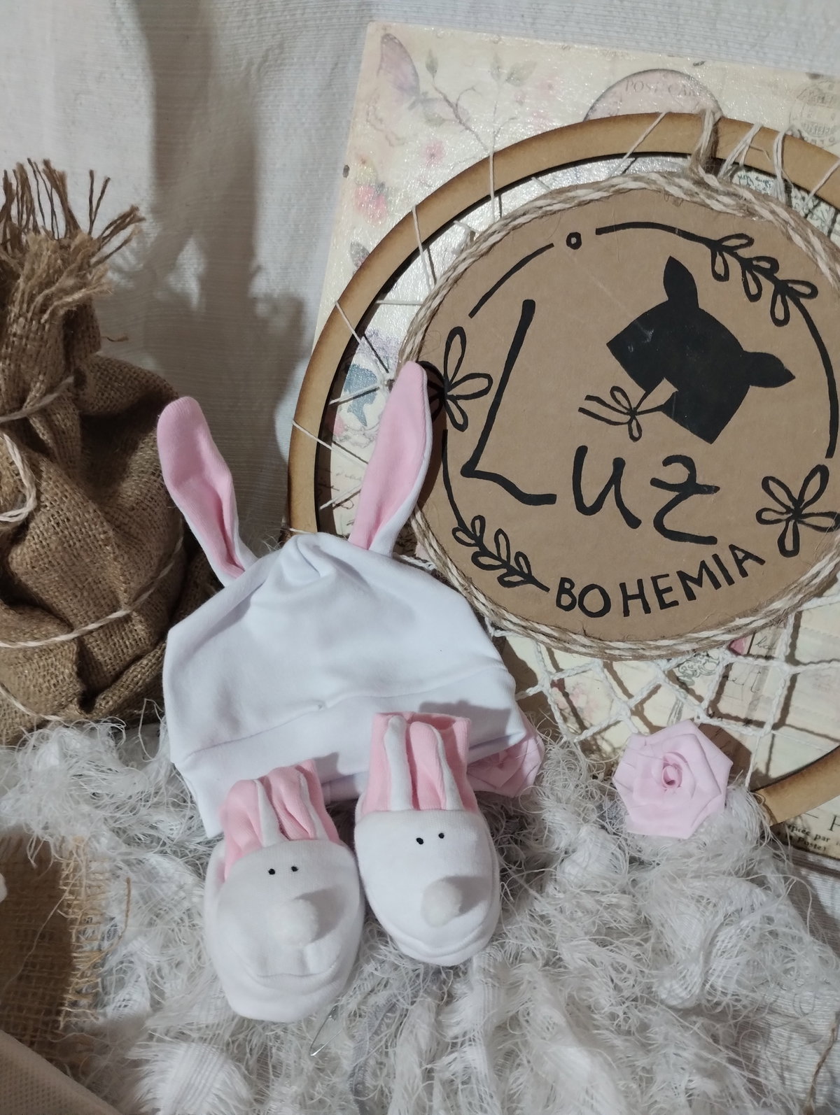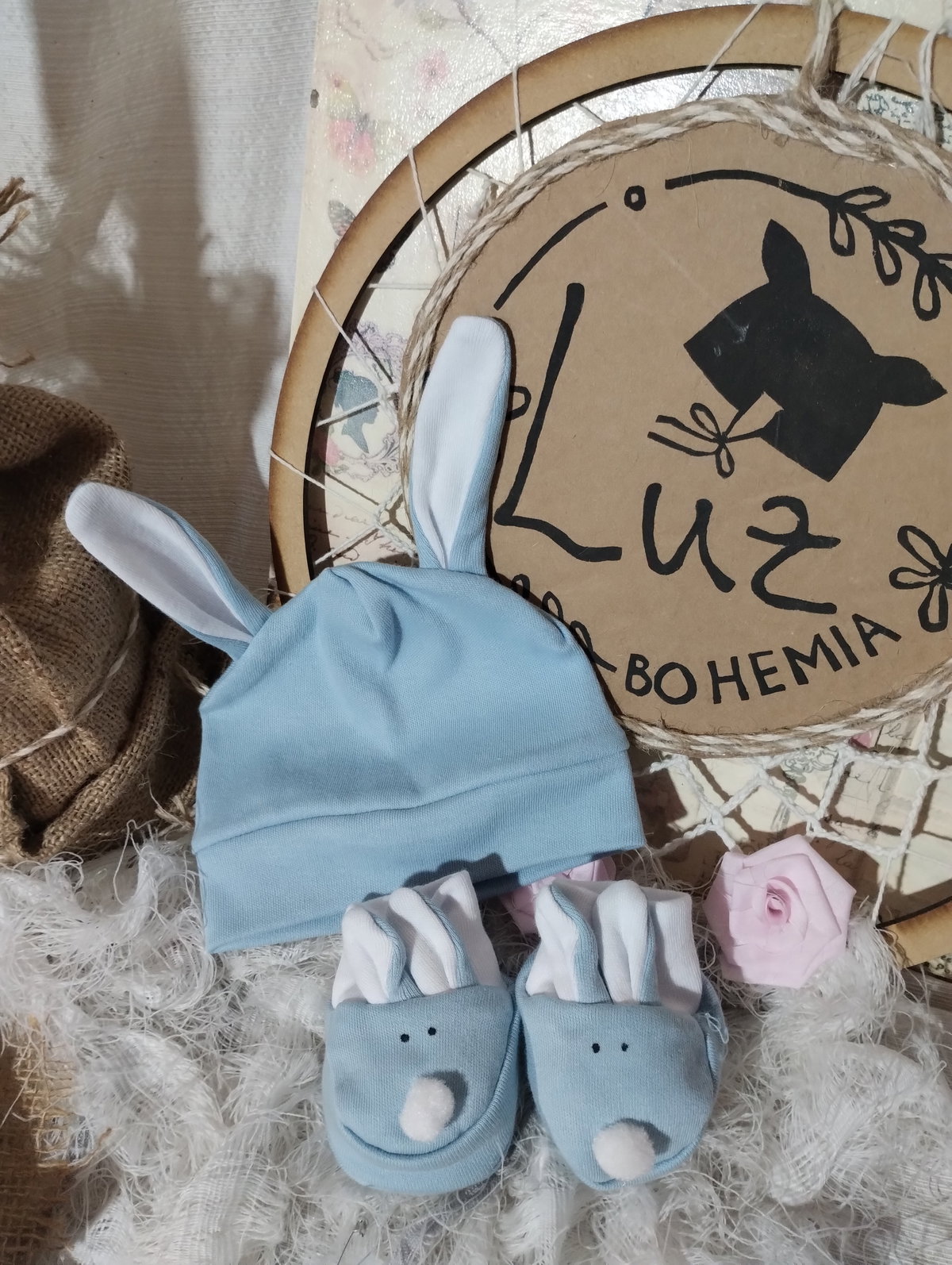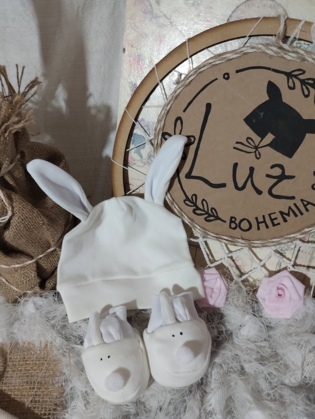 Set de Gorrito Orejas + Escarpines | Baby Rabbit | Algodón 100 %